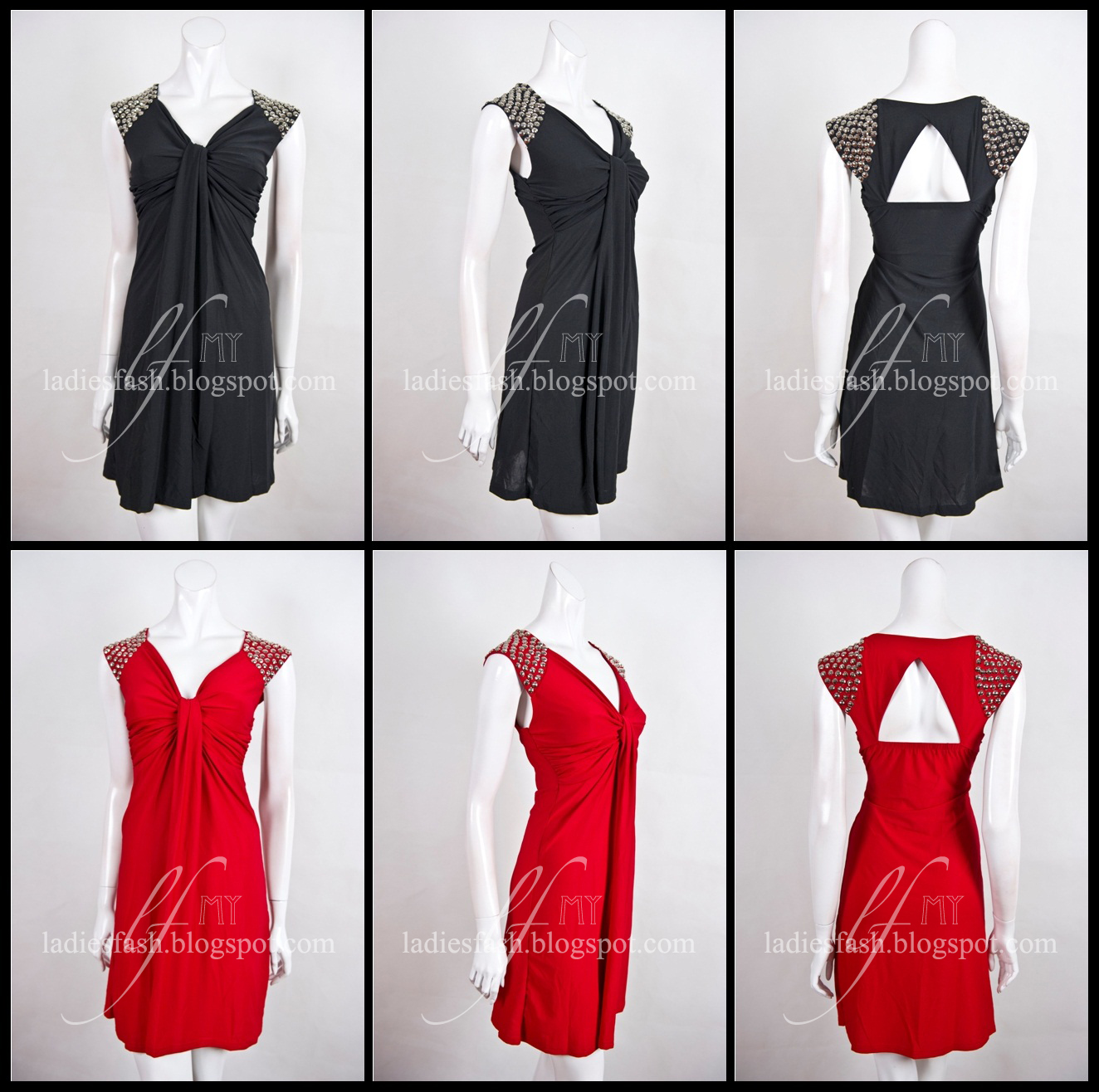 GA9 Embellished silver stud on the shoulder Featuring a knot V-neckline Sleeveless styling draped front detailing A Key hole design at the back Price:RM48 Length:32" Bust:26-34" Waist:26-38" Hip:40-50" Weight:0.3kg Colours: (1)Black (2)Red (3)Royal Blue (4)Green(SOLD) Material: Imported Polyester/Spandex